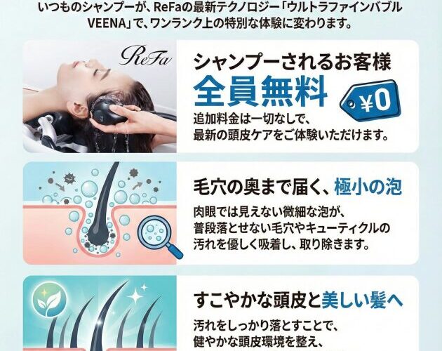シャンプーをご利用されるお客様全員に、追加料金【0円】でこの最新頭皮ケアを無料サービスを実施中です。